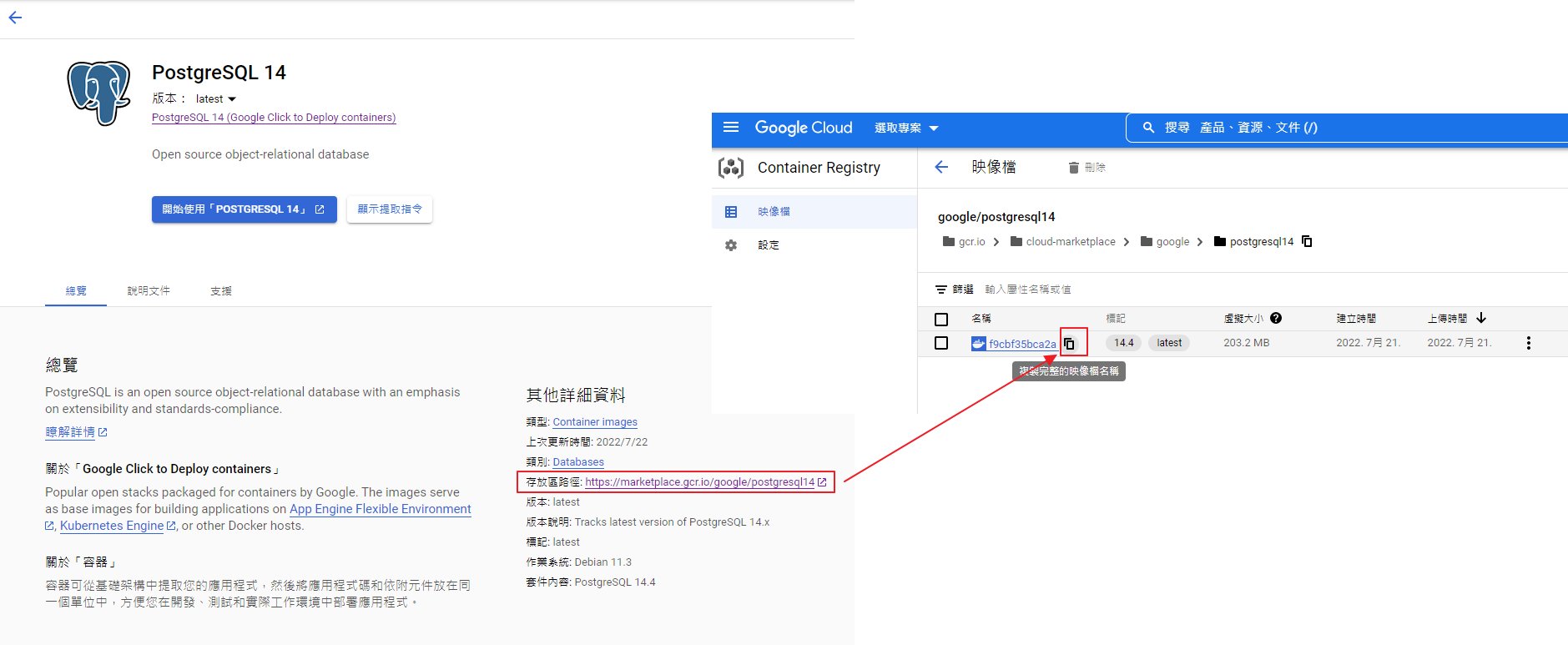 容器區塊,點擊DEPLOY CONTAINER - 貼上前面複製的容器位置