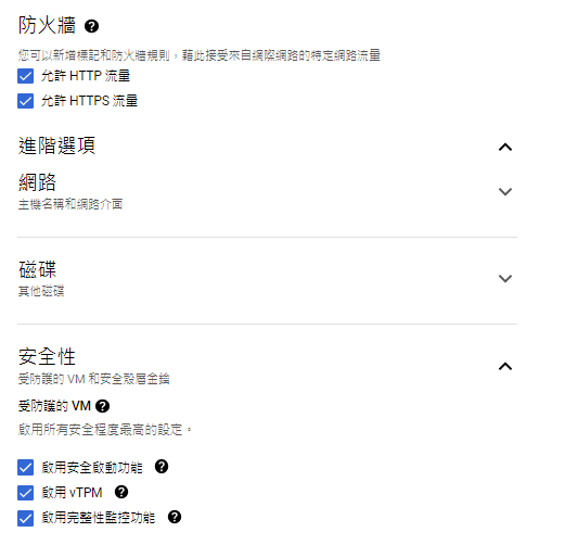 - 防火牆的允許 HTTP流量、HTTPS流量 (不勾也無妨)